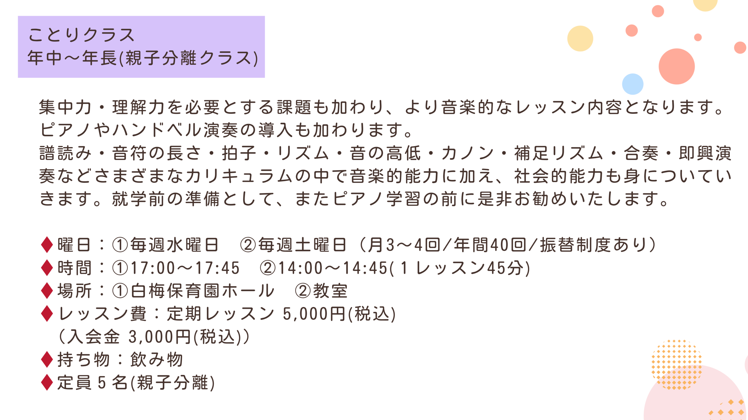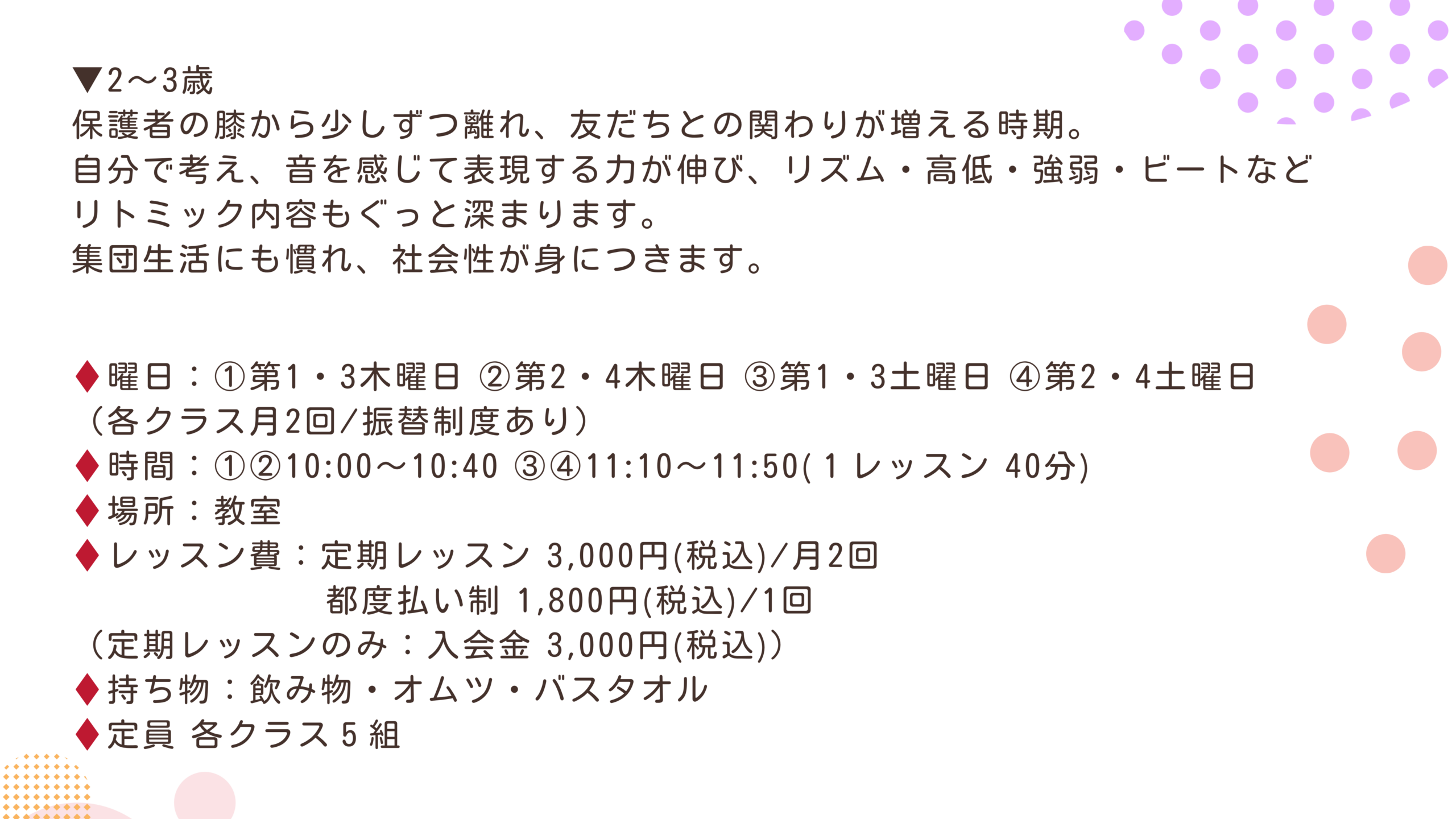クラス別レッスン内容